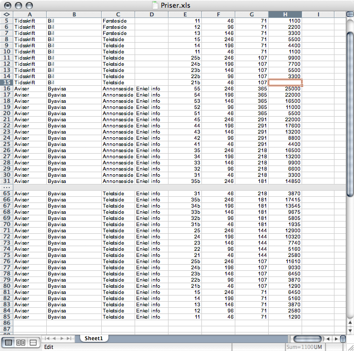 Det er tatt høyde for at annonsen kan koste forskjellig alt etter hvilken siden den står på i avisen eller tidsskriftet, men det er ikke tatt hensyn til eventuelle individuelle rabatter etc.