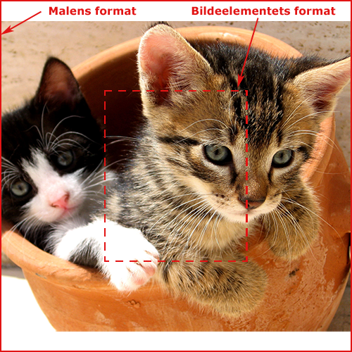 - entire – Skalerer bildet (uproposjonalt) slik at det fyller hele bildeelementet. Denne gir samme resultat som «Skalér» under valget «Låste bildeproporsjoner».