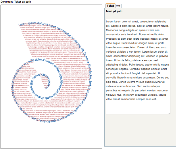 Lag deg et Illustrator-dokument som har samme format som den tekstboksen du skal ha tekstflyt i, eller som den malen hvor du skal benytte tekst på path. Dette gjelder særlig for tekst på path. På tekstboksen kan du velge om svg-en skal skaleres til boksen eller ikke.