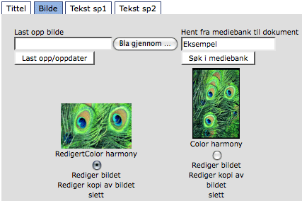Når valget settes til «ja», får brukeren tilgang til å søke i og hente bilder fra Mediebanken direkte fra input-siden. Valget blir tilgjengelig for brukeren når bildeelementet er opplastbart.