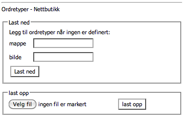 Tekstfila inneholder i utgangspunktet kun ordretyper som allerede er opprettet. Dersom du ønsker at fila også skal inneholde alle produktene som ikke har noen ordretyper, må du angi et midlertidig navn i feltet «bilde». Dersom du også ønsker å definere ordretyper på eksisterende mapper, angir du et navn i feltet for «mappe».