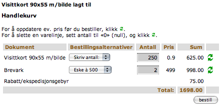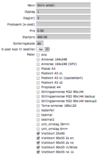 Det er lurt å gi gode navn. Hvis et alternativ er f.eks. «200 opplag – 5 dagers levering», er det lurt å kalle ordretypen nettopp det.