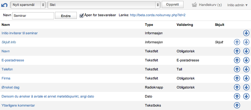Du kan endre rekkefølgen på spørsmålene ved å bruke pilene til høyre i lista.