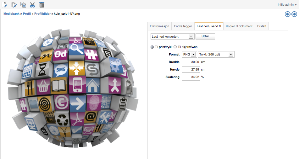 Last ned originalbildet eller et bilde i ønsket format/størrelse. Bildet kan også sendes på e-post.