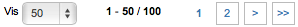 Som standard vises 50 filer på hver side. Du kan øke dette tallet ved hjelp av dropplisten nede til høyre. Midt på nede vises informasjon om hvor mange filer som vises på siden og hvor mange filer det er totalt i mappen.