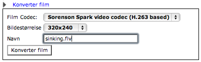 Obs: Videokonvertering krever en ekstra programvarelisens, og vil ikke bli tilgjengelig før denne er på plass på Cordaen.