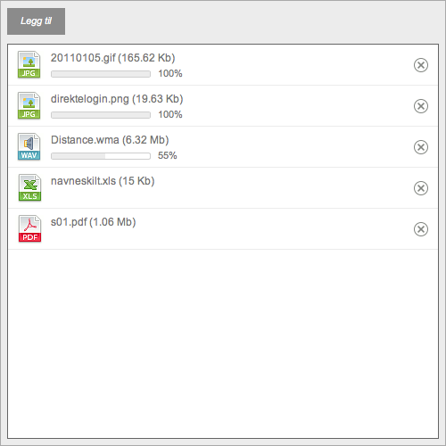 Last opp fil(er) – Klikk på denne for å laste opp én eller flere filer. Corda benytter tre ulike typer opplasting alt etter hva slags programvare du allerede har installert på din PC.