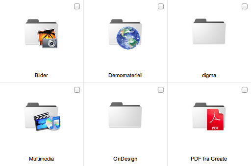 Filer organiseres ved å putte dem i mapper. Det er ingen begrensninger på hvor mange mapper du kan ha inni hverandre. På denne måten kan du enkelt finne en mappestruktur som passer deg og ditt.